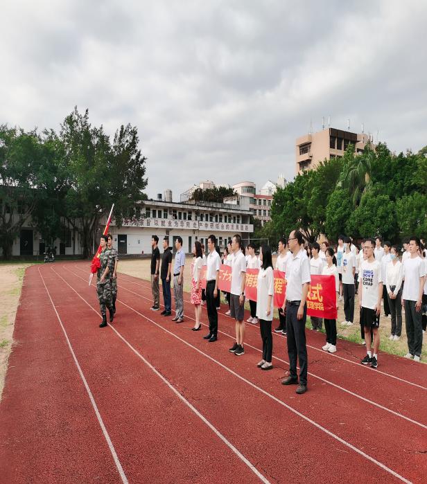 迎着初升的太阳,沐浴金秋的微风,上午八时许,在ac米兰官方网站党委副书记吴思锋的主持下,升旗仪式拉开帷幕。在庄严肃穆的氛围中,升旗手迈着雄健的正步将旗帜送上旗杆,嘹亮的国歌透过音响在操场响起,师生们跟唱着国歌,注视着红旗冉冉升起。