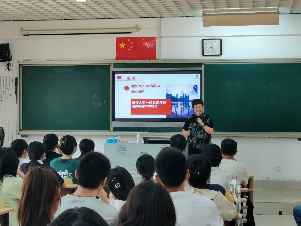 系主任杨迪对2022级工商管理专业的全体新生表示了热烈的欢迎,告诉学生们要“了解专业,热爱专业”,在大学四年中要“有梦、有生活、向前冲”,并对学生的大学生活表达了美好的祝愿。陈颖老师从院系组织体系、专业师资条件、教学基础、专业概况、课程体系、毕业条件以及就业前景几个方面进行了一系列解说,让同学们对工商管理专业的基本情况有了大致的了解和认知。介绍会还从“中学与大学学习的七大不同点”出发,为学生在大学期间的学习心态、学习方法和时间管理等方面提供了温馨的建议;最后李杰老师作为工商管理专业的班主任与大家进行了深入的交流,她幽默的语言极大地调动了同学们的积极性,现场气氛反应热烈。