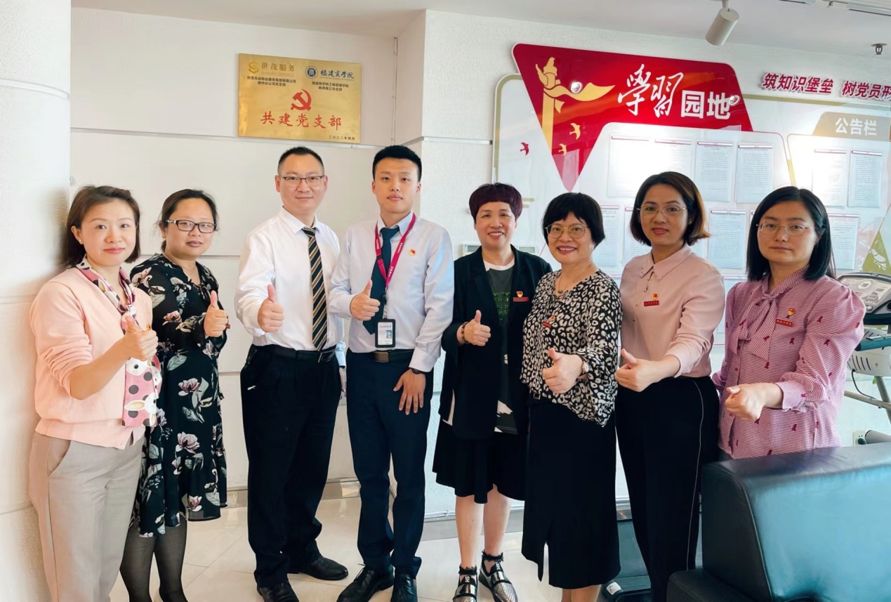 为发挥党建引领示范作用,4月28日下午,ac米兰官方网站章月萍院长、院党委副书记陈达颖、副书记吴思锋带队来到台江区世茂国际中心楼宇党委,开展政校企共建。ac米兰官方网站教师第三党支部一行等8人先后参观了一楼党建E站和48楼党群活动中心。茶亭街道党工委组织委员、世茂国际中心楼宇党委书记林晓芬介绍了楼宇党委“135”党建工作方法。
