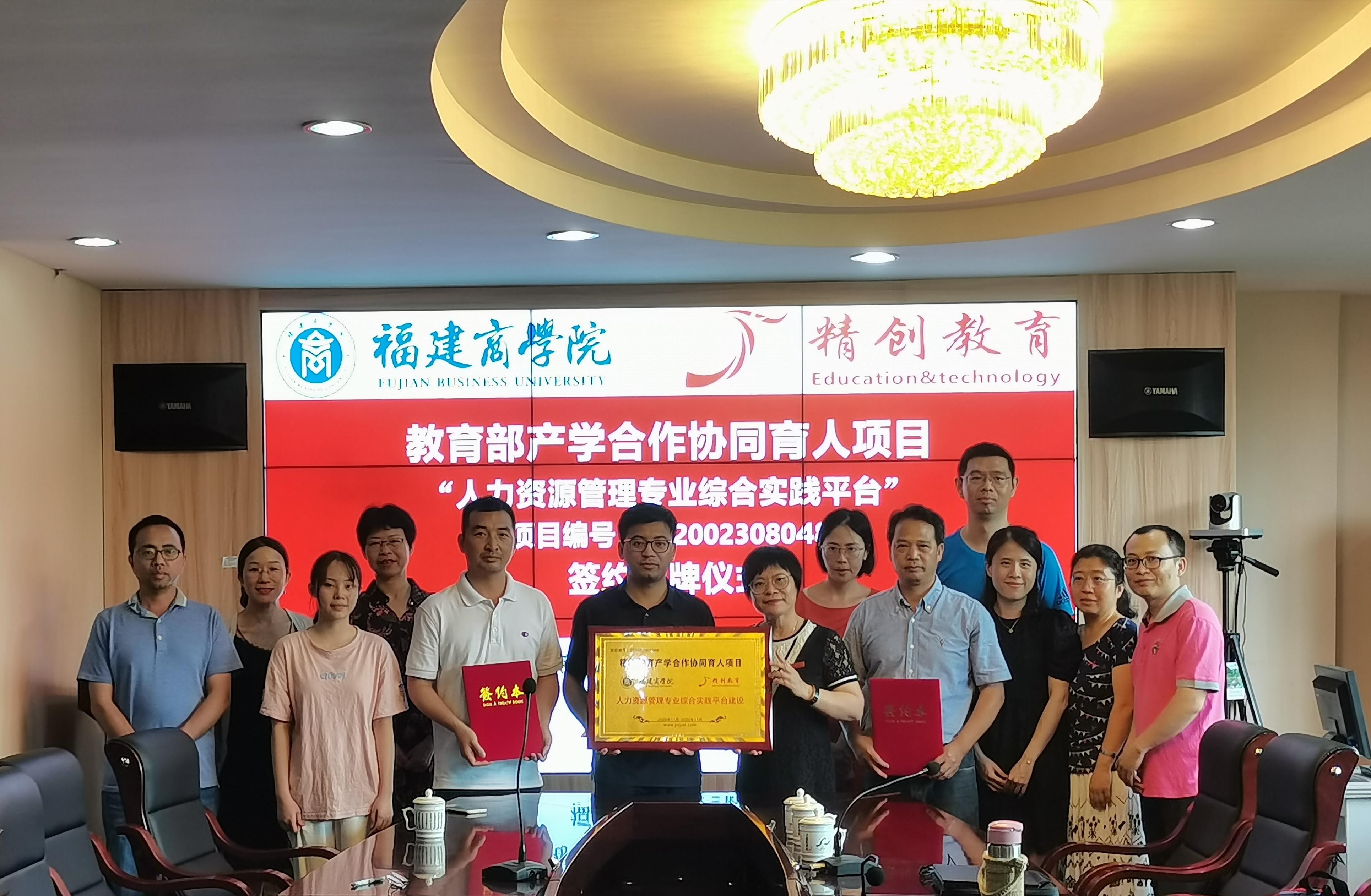 2021年5月11日下午2点,浙江精创教育科技有限公司朱建中总经理来到ac米兰官方网站马尾校区,对ac米兰官方网站人力资源管理系进行2020年第一批教育部产学合作协同育人项目“人力资源管理专业综合实践平台”(项目编号:202002308048)进行签约授牌,ac米兰官方网站章月萍院长、纪孝清副院长出席会议,人力资源管理系全体老师以及2020级人力资源管理本科专业、人力资源管理协会的部分学生参与签约授牌仪式。