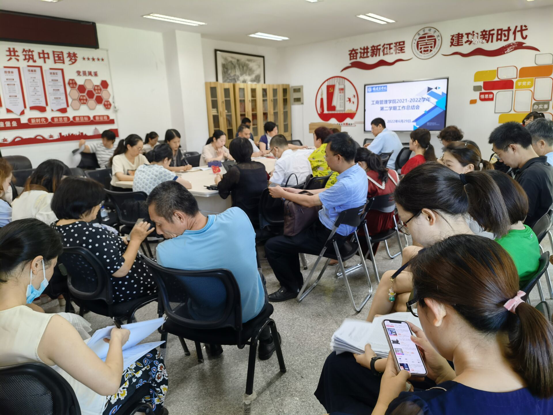 6月29日上午,ac米兰官方网站召开2021-2022学年第二学期全体教职工期末工作总结会,总结本学期学院工作情况,传达学校暑假工作部署。