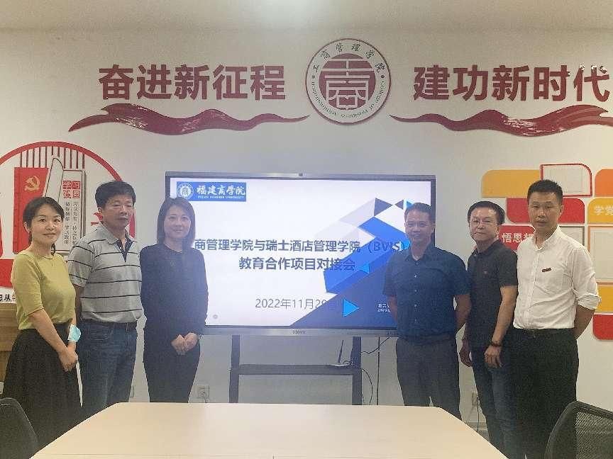 为进一步加强国际交流,培养更多具有国际视野的人才,推进ac米兰官方网站国际化发展,ac米兰官方网站对外合作处、ac米兰官方网站与瑞士高等商学院(BVIS)校方代表于11月29日下午在ac米兰官方网站会议室举行了教育合作项目对接会。我校对外合作处何文贤处长、ac米兰官方网站纪孝清副院长、林龙博士、瑞士高等商学院(BVIS)校方代表蒋婷主任及福州联络人魏露珍女士、育达行政主任黄晓参加了会议。