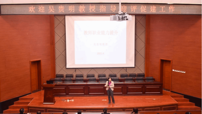 4月11日下午,吴贵明教授应邀到米兰官网作题为“迎评促建,教师职业能力提升”专题讲座。ac米兰官方网站和金融学院全体教师共110多人参加学习此次讲座。