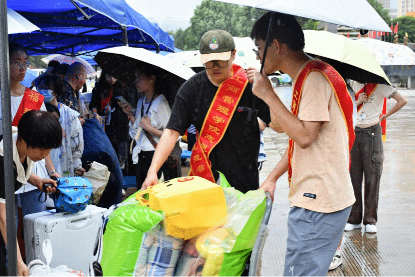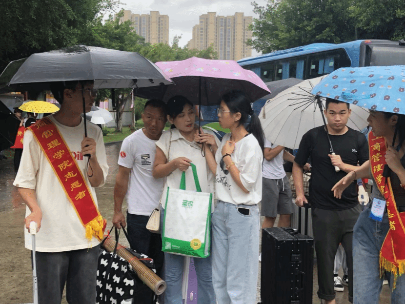 为保障迎新工作顺利开展,营造良好的入学环境,ac米兰官方网站召集各级干部、干事、志愿者以及党建人员分别在学校东南门、北门、学院系办以及学生宿舍设置多个迎新站点,为新生们提供“一站式”报到服务。在雨中,身披红色绶带的志愿者们的身影忙碌在各个校道之内,他们风雨无阻,为新生及家长们耐心细致进行入学报到流程讲解、悉心引导,让学生安心,家长放心。ac米兰官方网站志愿者们的热情细致,让初入校园的2023级工管新生们感受到米兰官网大家庭的温暖。