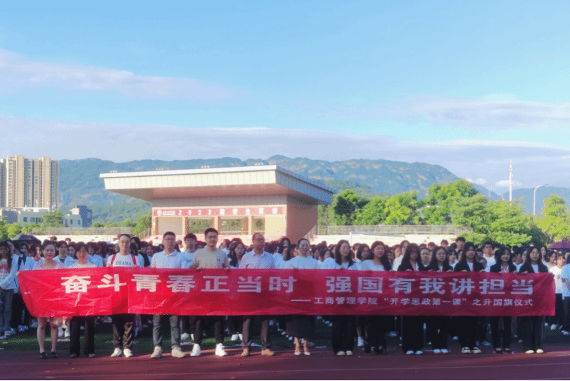 奋楫扬帆风正劲,勇立潮头逐浪高。为学习贯彻习近平新时代中国特色社会主义思想,引导青年学生奋进新征程,建功新时代,贡献青春力量,9月25日早上七点,ac米兰官方网站全体2100余名学生齐聚马尾校区田径场,隆重举行“奋斗青春正当时,强国有我讲担当”主题升旗仪式。米兰官网党委副书记吴思锋、团学办主任韩玉娟、辅导员李倩颖、许艳萍、陈柳武、林骁勇、朱珺玮、谢婧妍、江美玲参加活动。
