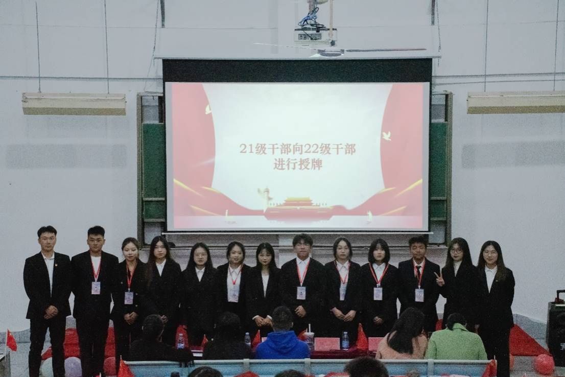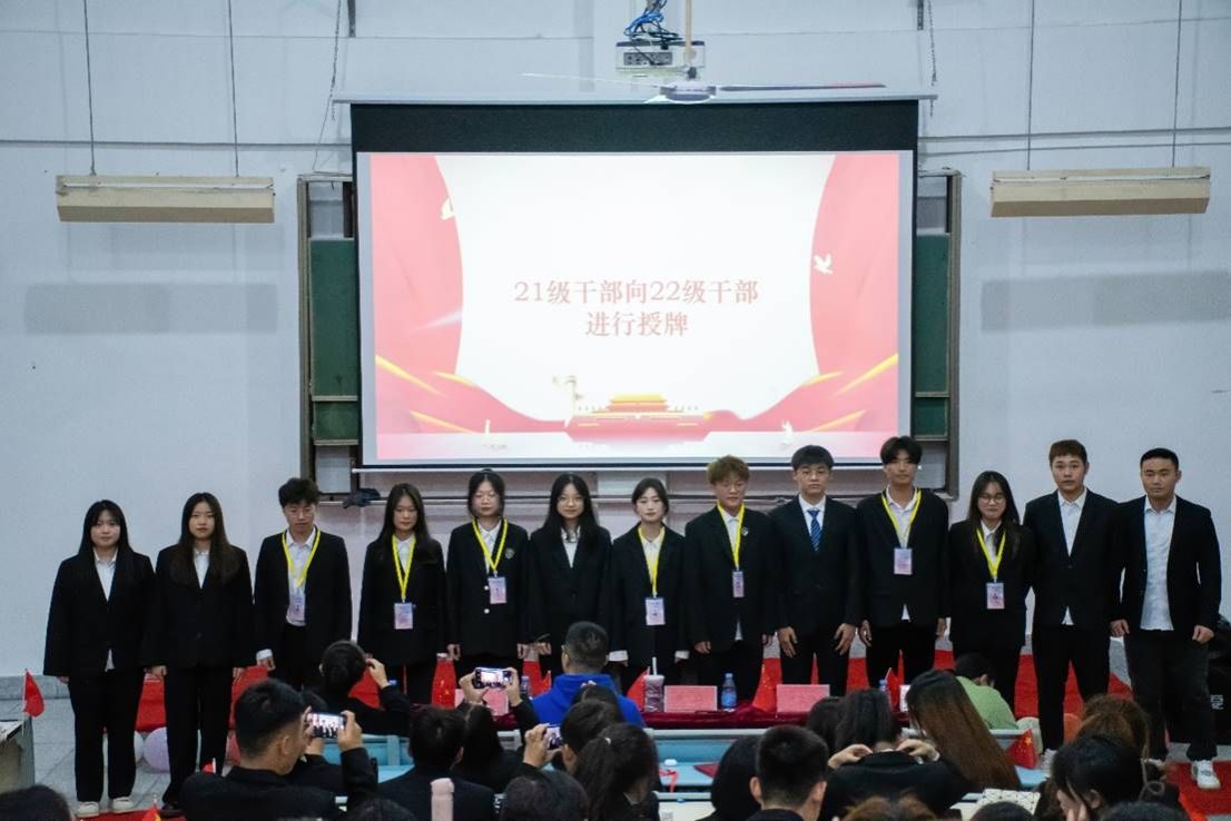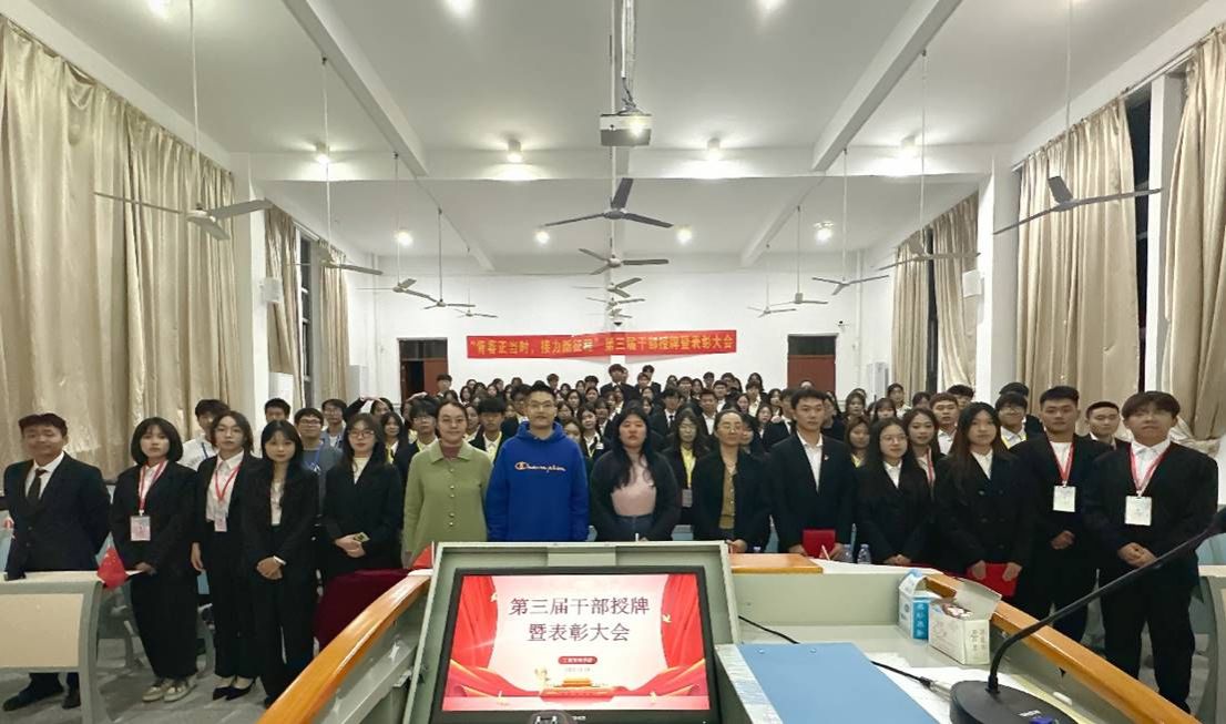 为进一步加强米兰官网学生干部队伍建设,强化团委学生会成员的责任意识和担当精神,切实保障团委学生会工作的连续性。2023年11月20日,ac米兰官方网站于非洲厅召开“青春正当时,接力新征程”第三届干部授牌暨表彰大会,ac米兰官方网站团委书记韩玉娟、辅导员朱珺玮、谢婧妍、江美玲、林骁勇出席,第二届全体学生干部和第三届全体学生干部参加本次大会。