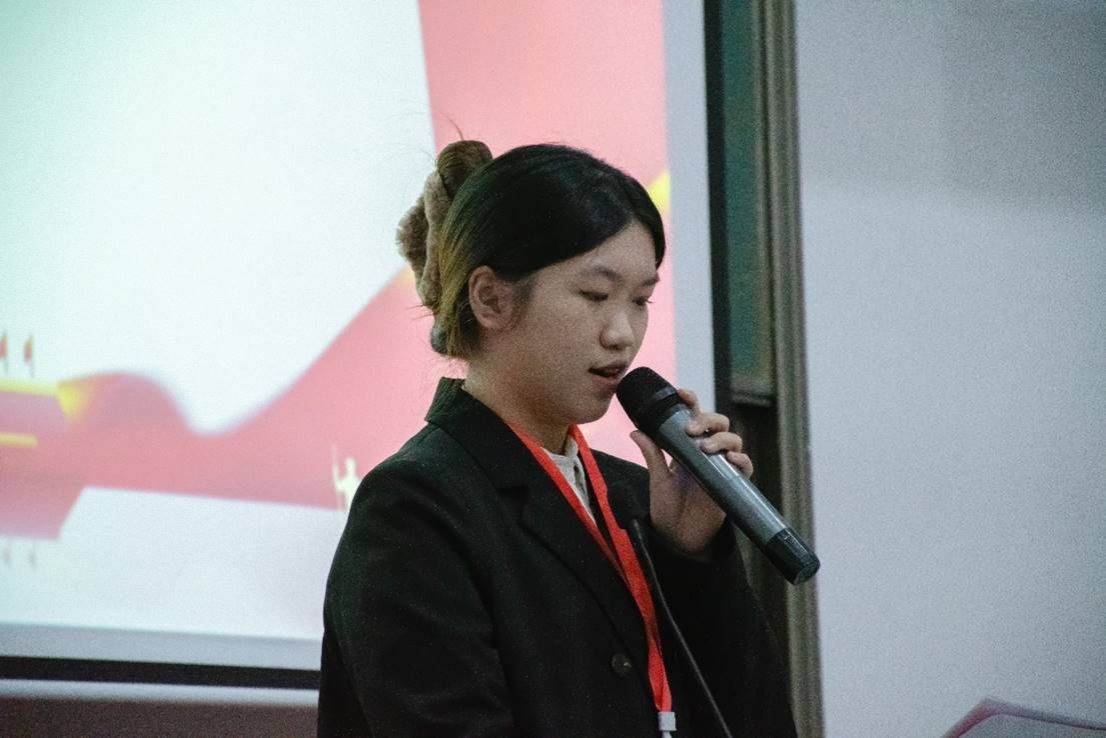 学生会执行主席金婷上台发言,她表示在过去一年的工作中,学生干部充分发挥纽带作用,全心全意为学院服务。同时,她鼓励新一任学生干部延续优良作风,踔厉奋发,砥砺前行。