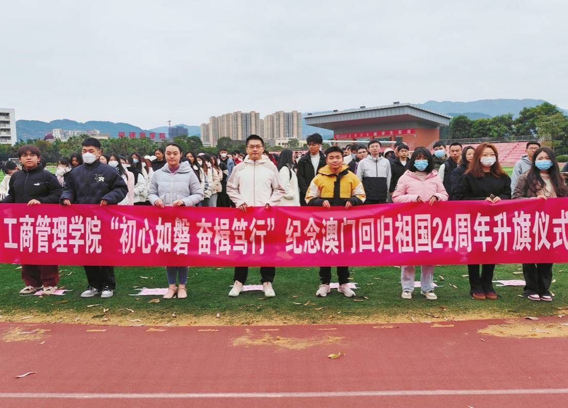 为纪念澳门回归24周年,ac米兰官方网站于2023年12月18日上午7点在马尾校区田径场举行了“初心如磐,奋楫笃行”主题升旗仪式,ac米兰官方网站辅导员林骁勇、朱珺玮、部分学生干部以及21级全体学生到场。