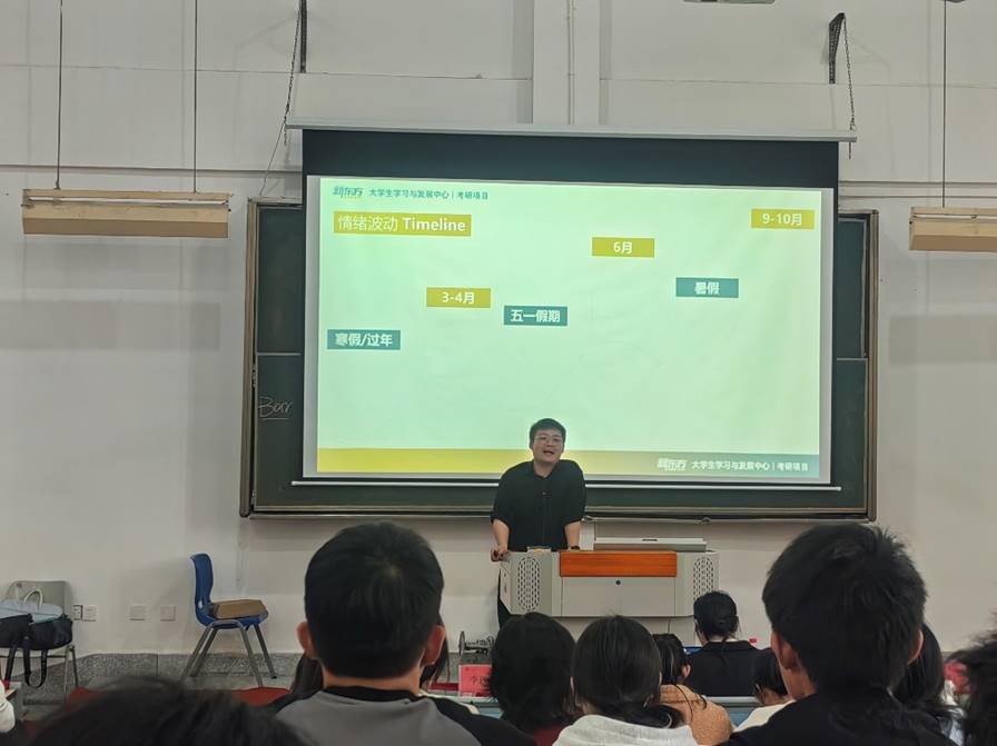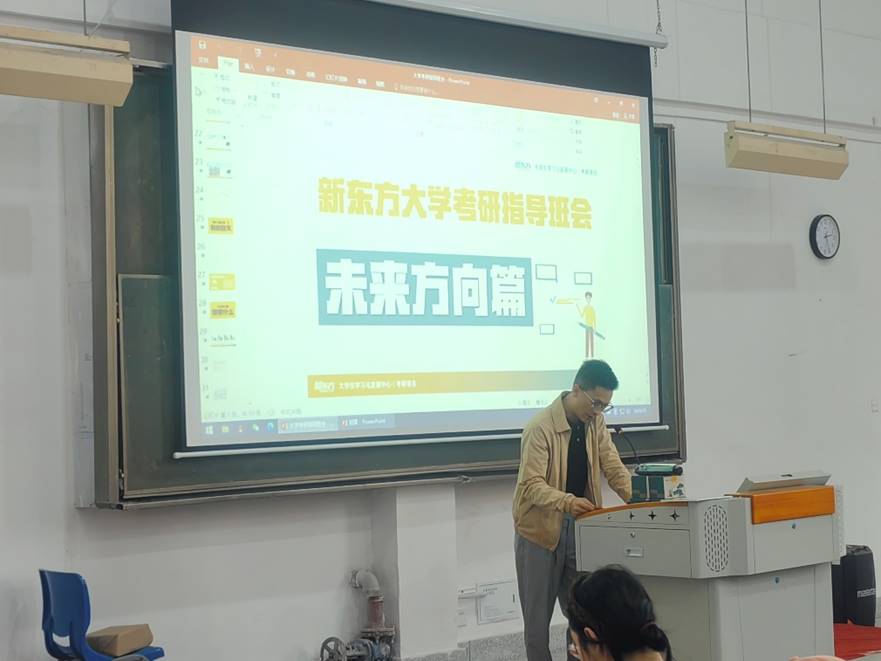 考研分享会伊始,王棋元副书记代表学院党委向校图书馆的关心和支持表示衷心的感谢,向新东方讲师团队的到来表示热烈欢迎。他强调了考研对于学生们个人成长和职业发展的重要性,并鼓励同学们认真聆听讲座内容,积极向讲师提问,以便更好地掌握考研技巧和方法。