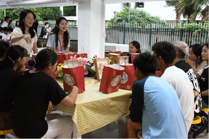 交流互动结束后,学生代表邀请少数民族同学参与中秋游园活动,与汉族同学一道体验猜灯谜、博饼等小游戏,在实践活动中感受中秋文化。最后,辅导员江美玲老师寄语各民族同学要向石榴籽那样紧紧抱成一团,相互理解、共同成长,为国家的发展和民族进步贡献出自己的智慧和力量。
