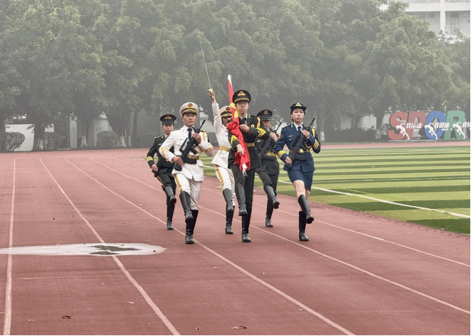 随着清晨的第一缕阳光洒满校园,升旗仪式在雄壮的国歌声中拉开序幕。国旗护卫队迈着矫健的步伐,护送五星红旗走向升旗台。在全体师生的注目礼下,国旗冉冉升起,迎风飘扬,激发了全体师生的爱国情怀和民族自豪感。