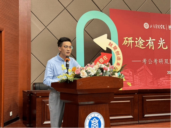 学院党委副书记王棋元致欢迎辞,他对成功“上岸”的同学们表示热烈的祝贺,并希望在座的同学们能 “志存高远,锚定目标;脚踏实地,厚积薄发;善用资源,主动成长”,期待通过校友间的交流与分享,进一步推动个人学业发展与学院建设。