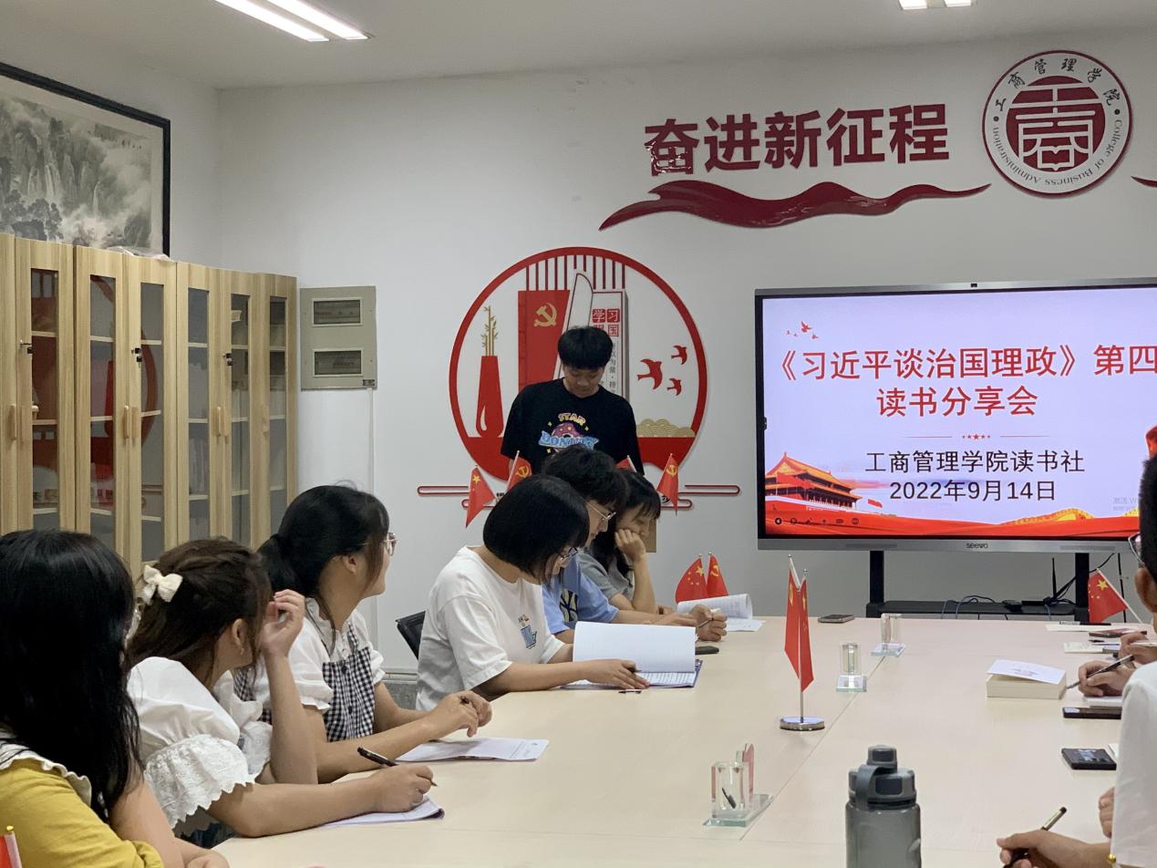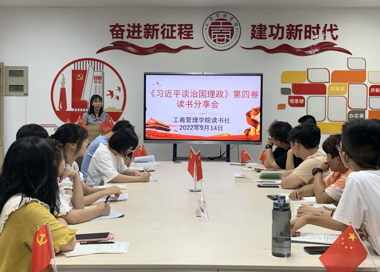 为了迎接党的二十大胜利召开,持续深入地学习习近平新时代中国特色社会主义思想,9月14日晚上,ac米兰官方网站读书社在党员活动室组织开展《习近平谈治国理政》第四卷读书分享会。ac米兰官方网站读书社指导老师、学生干部以及部分2022级新生参与了本次会议。