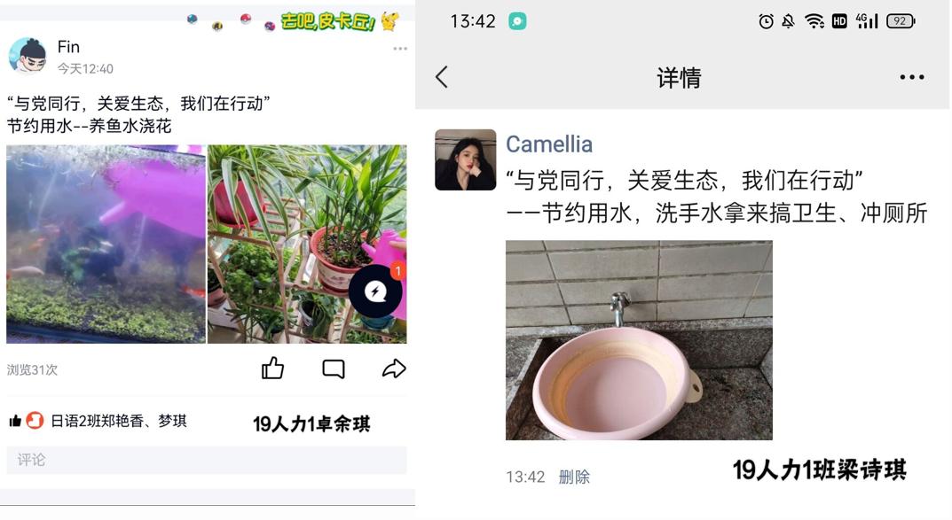 支部围绕世界地球日的内涵,着力提高党员关于生态环境保护的思想水平,增强党员关于我国可持续发展战略的环保意识,切实帮助党员树立可持续发展观,促进党员维护生态安全的责任感和使命感。在此次活动中学生党员分别在生活中践行保护地球,节约资源的实事,并进行宣传号召。党员们有的在校园的楼道里进行垃圾清扫,有的在宿舍里践行了节约用水的环保做法,有的在食堂里积极实现“光盘”行动,活动结束后每位党员还分享了自己的活动感想。