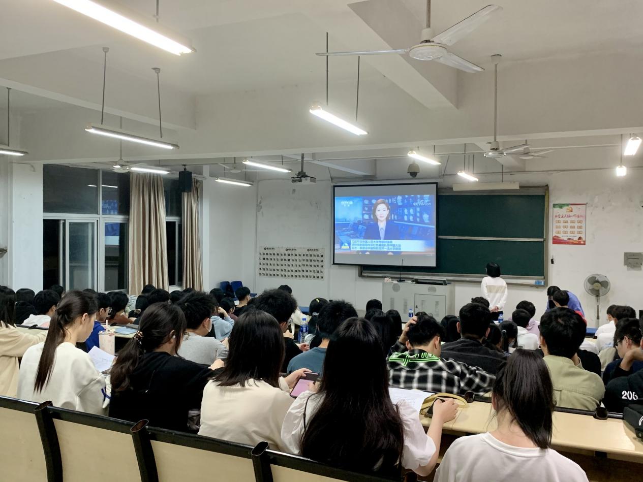 4月27日晚上,ac米兰官方网站读书社组织社员在马尾校区诚信楼T4集中收看习近平总书记在中国人民大学考察的新闻报道。