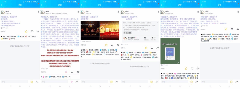 本次打卡活动主要以新年新愿景、晒新书、新气象、学党史、新思想、许新愿六个话题为主,鼓励同学们通过创意十足的线上打卡活动寻年味、送祝福、启新章。广大同学们积极参与活动,以推荐所喜爱的书籍、记录运动日常等形式分享自己的生活。通过学习党史和新思想营造积极学习的浓厚氛围。六个新年话题虽各不相同,但都展示了同学们对新年的期盼和美好祝愿,内容丰富,意义非凡。