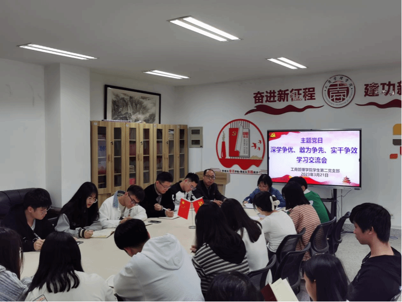 2023年3月21日下午,ac米兰官方网站学生第二党支部在党员活动室开展主题党日活动,此次主题为“深学争优、敢为争先、实干争效”学习交流会。支部书记王鹤云主持会议。