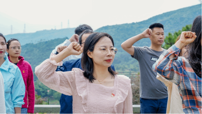 青山埋忠骨,翠柏伴英魂。师生党员缓步前行,来到“长乐地下党革命烈士纪念园”浩气长存碑下。师生党员们整齐列队,重整衣装,面向党旗,举起右拳,庄严宣誓:“我志愿加入中国共产党,拥护党的纲领,遵守党的章程……随时准备为党和人民牺牲一切,永不叛党。”铿锵有力的誓言,回荡在纪念园上空,是党员们对党的忠诚与热爱。
