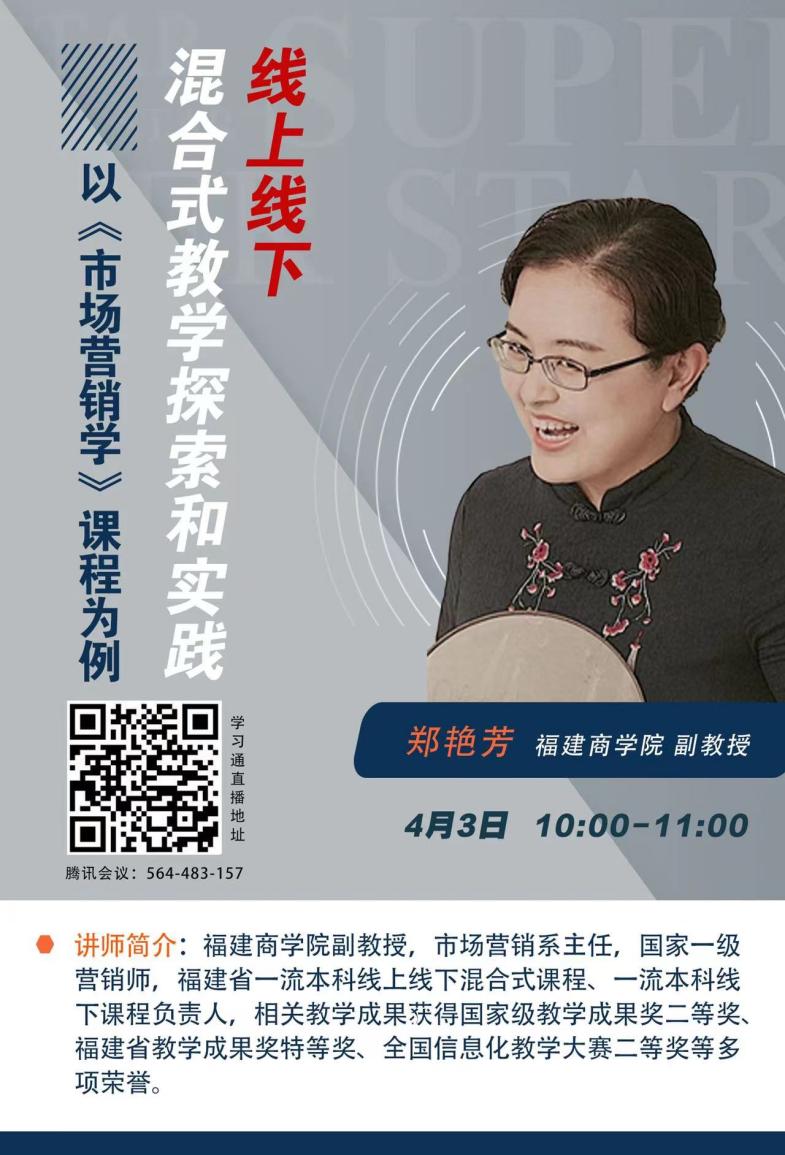 为做好疫情期间线上教学活动,2022年4月3日,我校ac米兰官方网站郑艳芳副教授在我省线上线下融合式教学经验会上分享了题为“线上线下混合式教学探索与实践-以市场营销学为例”的经验。该经验分享会由福建省教育厅高教处指导,福课联盟与超星集团主办。