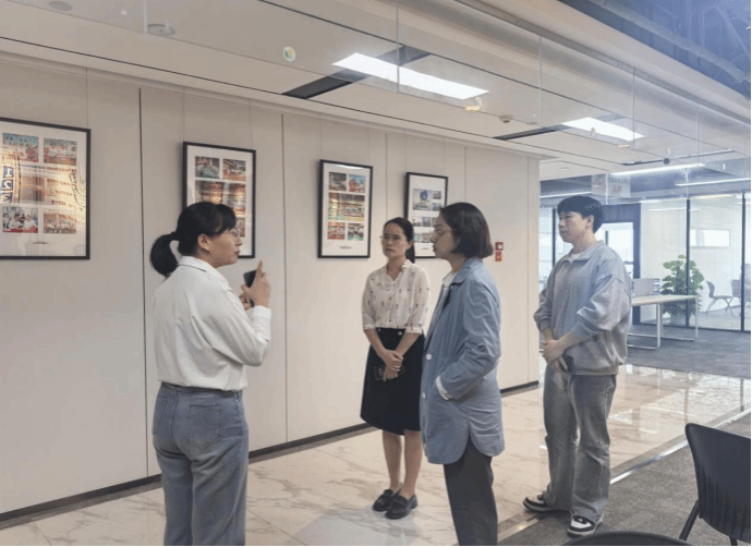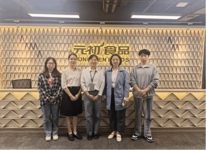 公司总裁兼副董事长陈启明、行政经理史旭阳和人力资源部负责人聂榕等领导对谢桂花副教授一行表示热烈欢迎,并就元初食品的发展历程、使命宗旨、经营模式、人才培养和需求等方面做了详细介绍,希望通过共建校企合作基地、举办招聘宣讲会、提供职业生涯规划辅导等方式加强与我校相关学科的交流互动,有针对性地为学生提供实习、留用机会。随后,老师们还参观了公司“荣誉墙”、办公区域、休闲空间等,切实感受元初食品的企业文化。