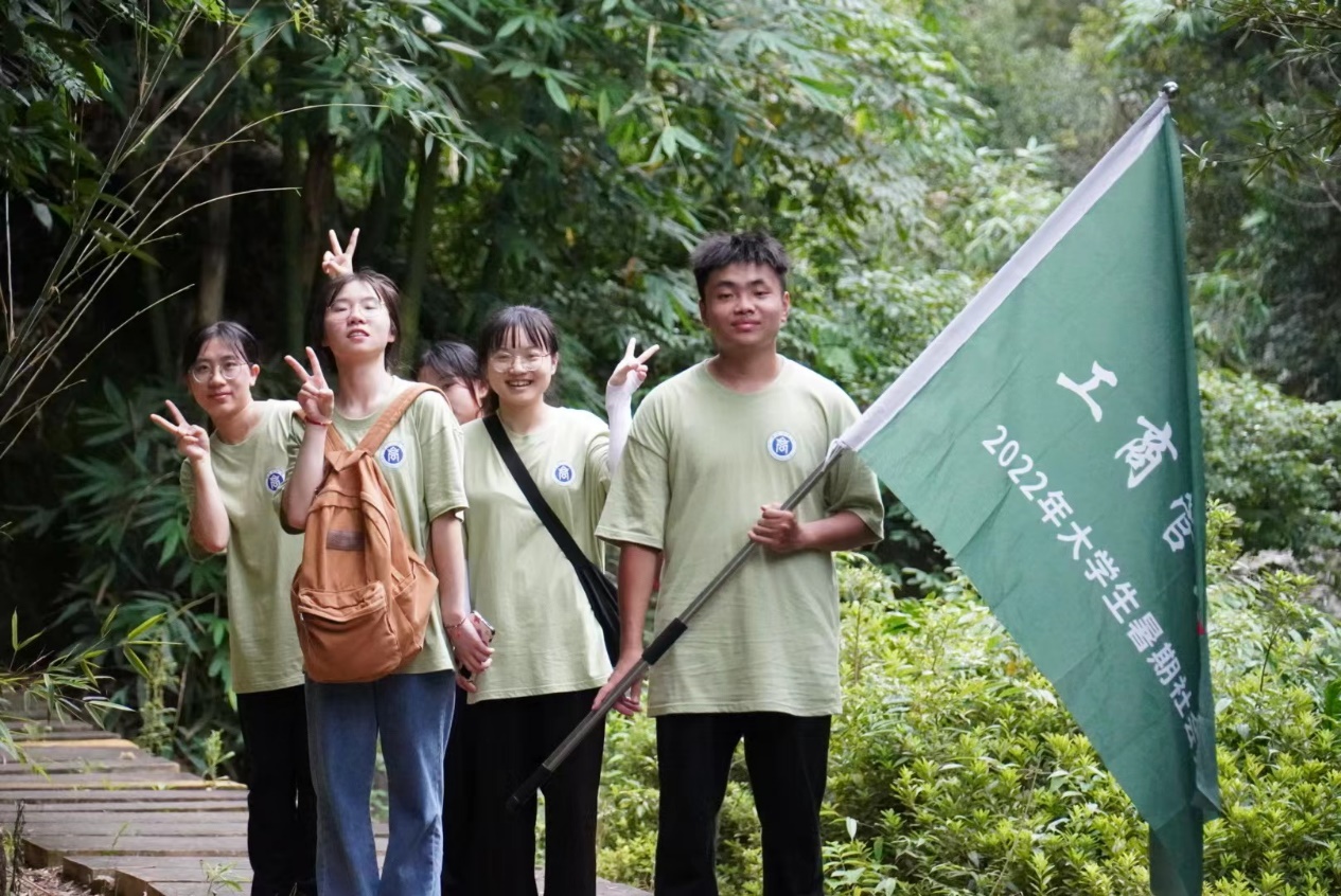 下午,队员们走进永春县云河谷进行素质拓展,开展徒步闯关重走红军路活动。疫情下的云河谷依然风景如画,山水秀丽,但却少了以往人来人往的风火气。实践队成员通过抖音号“工管对对碰”对当地的风景进行直播讲解,希望让更多的人欣赏云河谷的湖光山色、风土人情,了解当地为推动发展的优惠政策,为疫情防控下旅游业的发展尽绵薄之力。此次素质拓展,团队成员们,挑战朔溪,“飞拓泸定桥”,全方位锻炼团队协作能力、执行力,增强队员间交流与沟通。