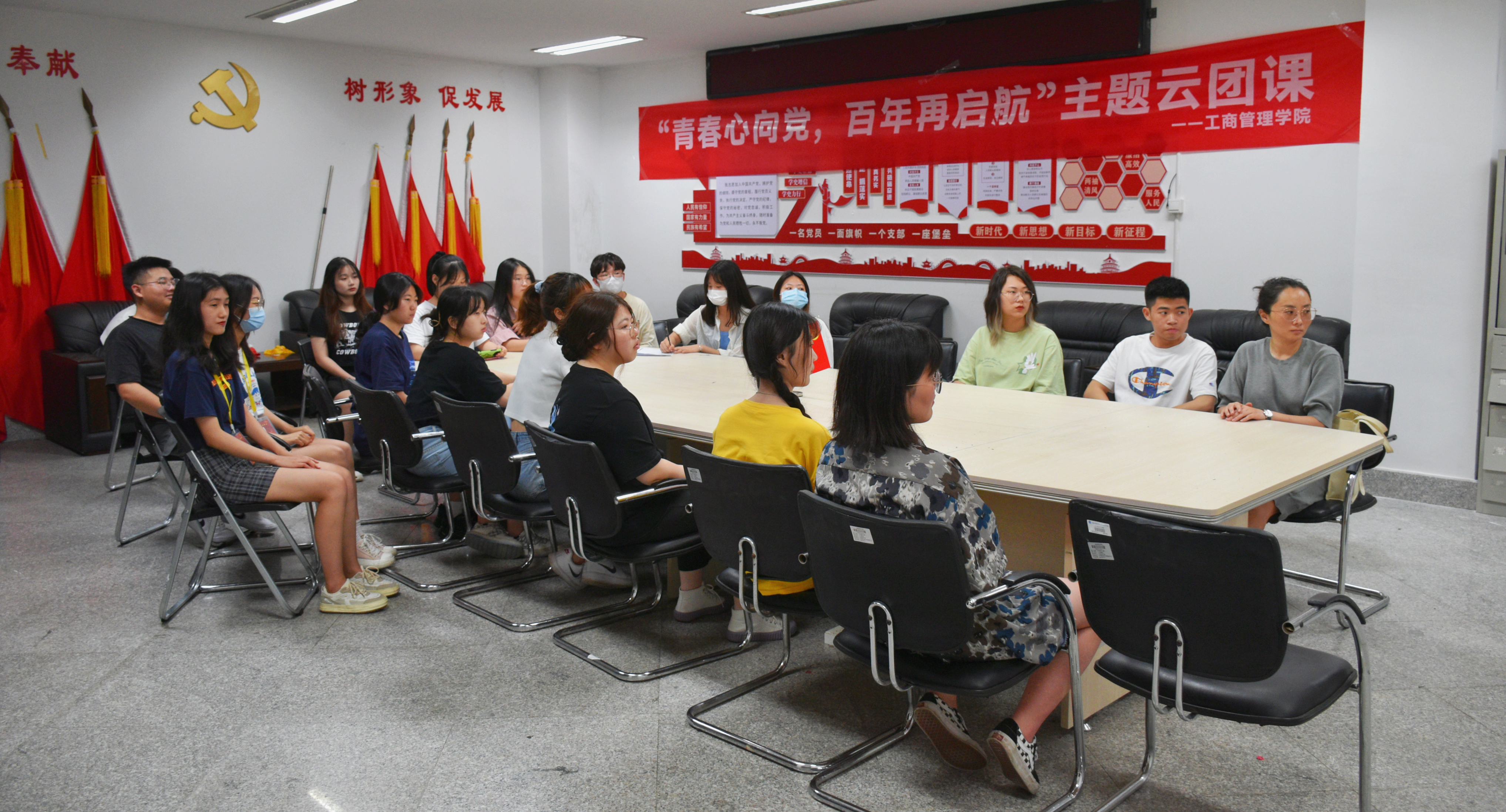 为了进一步推动全体学生学习习近平总书记在庆祝中国共产主义青年团成立100周年大会上的重要讲话精神,ac米兰官方网站于5月30日在党员活动室开展“青春心向党,百年再起航”主题云团课学习活动。