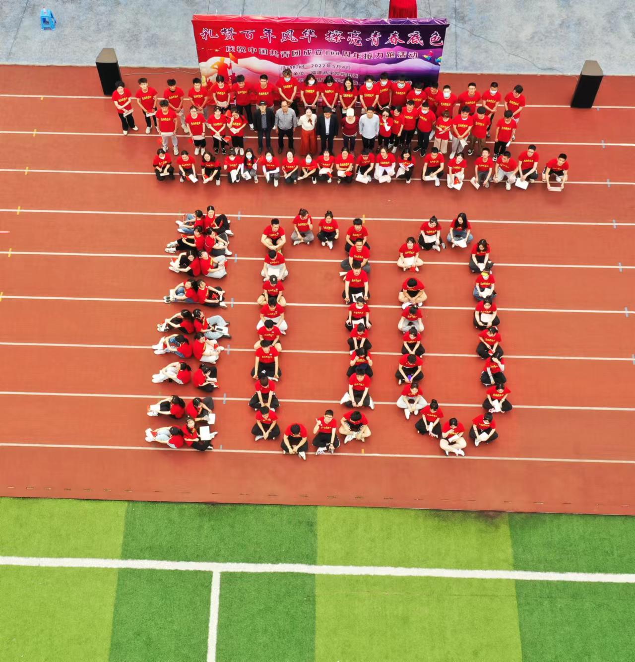 活动中,校团委副书记(主持工作)郑琼和兼职副书记谢张琳分别从校领导手中接过熊熊燃起的火炬,带领各二级学院团委书记奔跑在操场上。随后,各学院团员代表按照3人一组的顺序环校园开展火炬接力跑。同时,现场的学生观众还参加了青年节知识竞赛、爱国歌曲演唱、听歌识曲、抽奖等互动活动。在合影环节,青年学生摆出“100”的造型,庆祝中国共青团迎建团100周年。