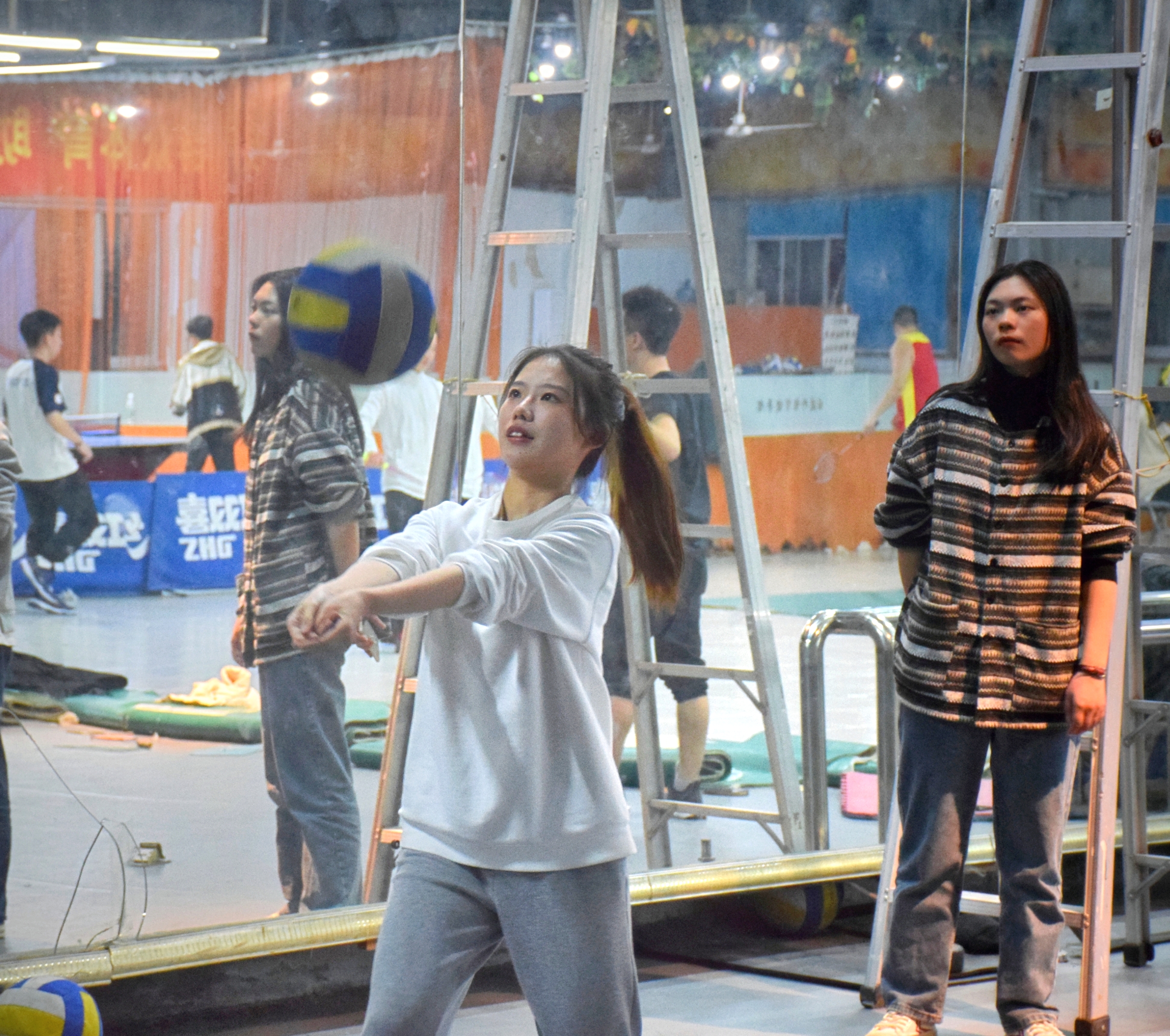 比赛精彩纷呈,在吹乒乓球时,每个人不禁屏气凝神,一鼓作气将乒乓球吹到下一个纸杯中,这是技巧与运气的双重考验。第一个项目就让运动会氛围迅速升温,现场欢呼声与笑声不断。两两一组背对背夹气排球接力赛中,各队成员以自己的方式快速通过跑道完成接力。齐心协力的合作,干部间强烈的团队意识,也正是本次活动的意义与精神内涵所在。