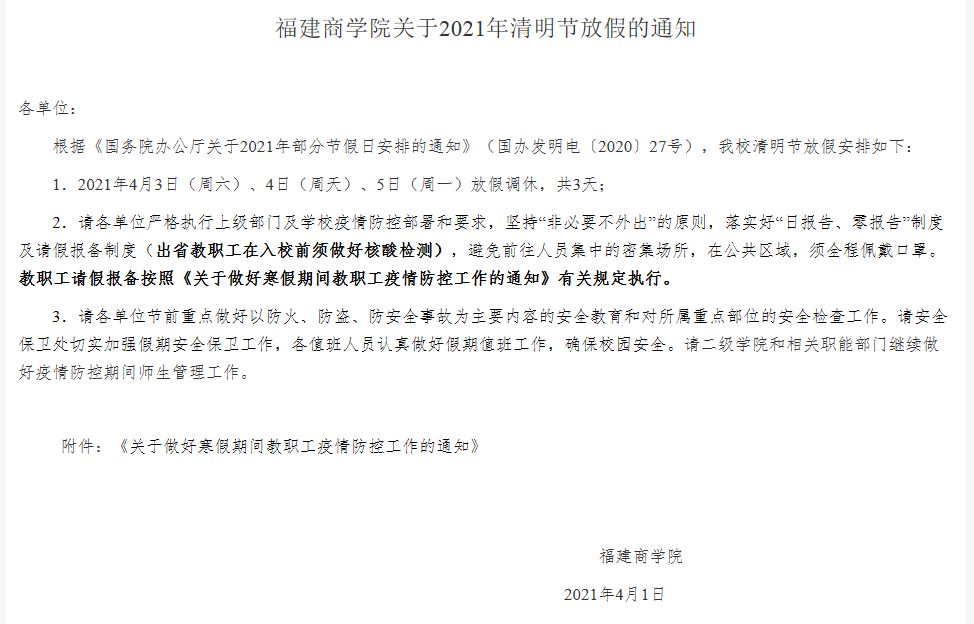 ac米兰官方网站关于2021年清明节放假的通知