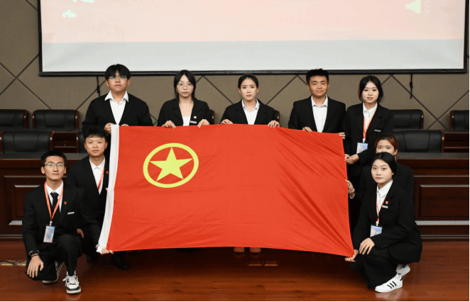 在庄严的团旗、院旗交接仪式中,新老干部交接团旗,完成使命的交接。由团委学生副书记刘冰蓉带领新一届学生干部面向团旗庄严宣誓,诉说着青年学子的坚定信念与决心。