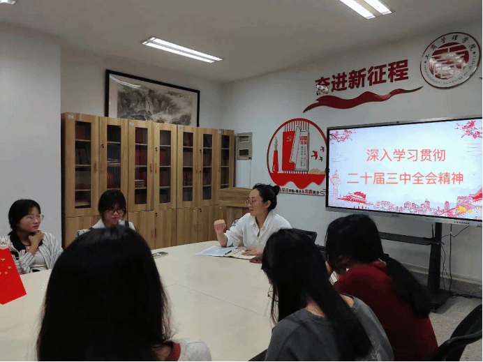 宣讲伊始,团委书记韩玉娟深入阐述了党的二十届三中全会的重大意义。她指出,这次会议是在我国发展的关键历史阶段召开的,为未来的发展指明了方向。随后,韩玉娟老师对全会精神进行了深入解读,并结合生动的实例讲解了全会精神中的诸多要点,特别强调了创新驱动发展战略的重要性,以及这一战略如何为大学生提供广阔的成长舞台和无限的发展可能。她指出,全会明确提出要深化科技体制改革,完善国家创新体系,这为大学生投身创新创业活动提供了有力的政策支持和制度保障。